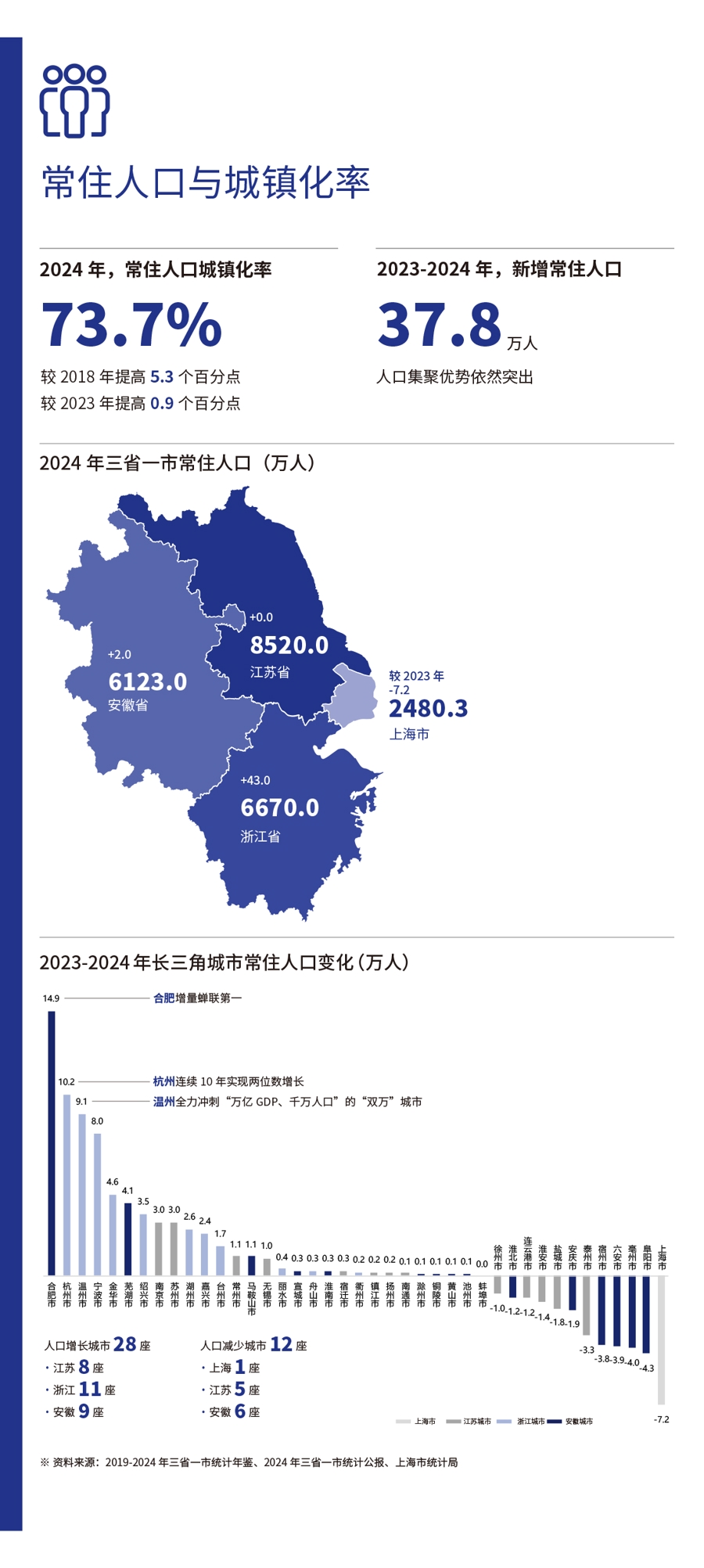 2024年,长三角人均GDP(1.95万美元)略有提升,即将跨过发达经济体标准线(2万美元)。