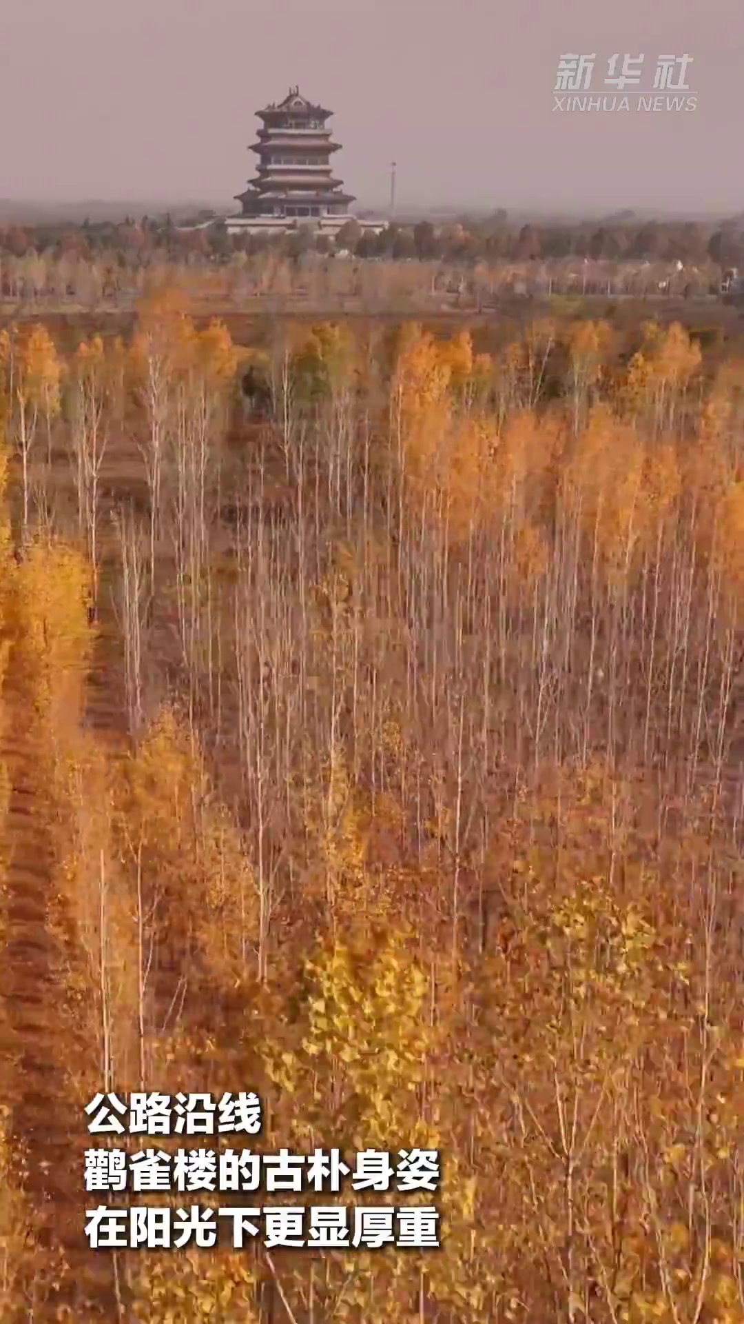 初冬时节,山西永济鹳雀楼旁的黄河岸畔层林尽染,与黄河金涛相映生辉,黄河一号旅游公路蜿蜒其间,串联起两岸醉人景致。