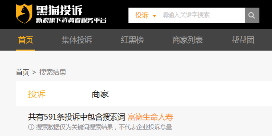通过查询黑猫投诉平台发现,关于富德生命人寿的投诉共有591条。从投诉事由来看,内容多涉及虚假宣传、欺骗消费者、销售隐瞒保险条款、保险公司误导诱导销售、未告知风险刻意隐瞒条款欺诈误导等。