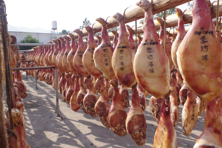 火腿在晾晒中,受访者供图